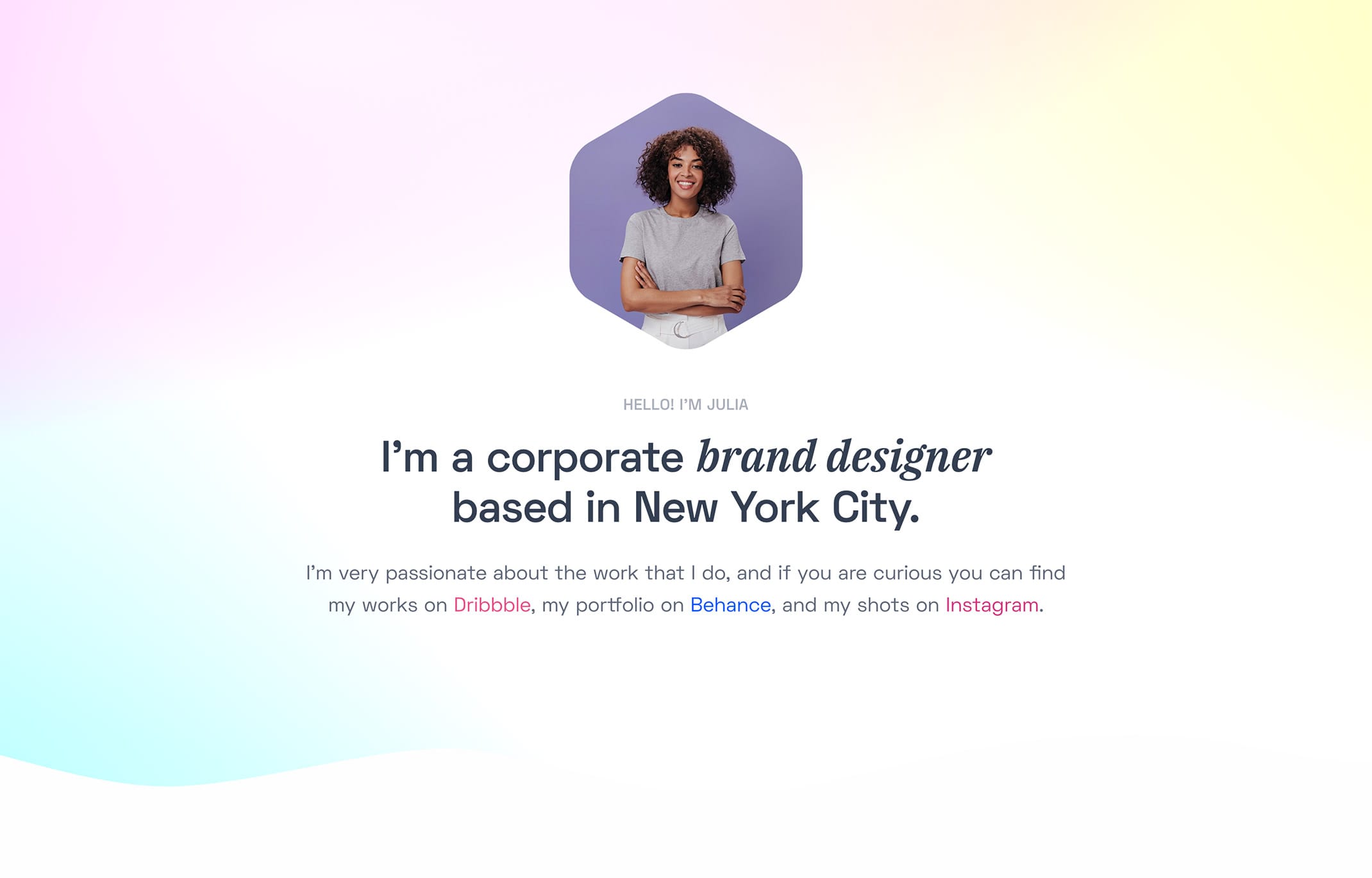 <p class="lead fs-22">I’m very passionate about the work that I do, and if you are curious you can find my works on <a href="#" class="hover" style="color: var(--bs-dribbble);">Dribbble</a>, my portfolio on <a href="#" class="hover" style="color: var(--bs-behance);">Behance</a>, and my shots on <a href="#" class="hover" style="color: var(--bs-instagram);">Instagram</a>.</p>